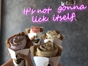 Cauldron Ice Cream makes handcrafted ice cream using liquid nitrogen and a sweet cream base to make ice cream to order in just a few seconds (not including time spent in line)! It’s really fun to watch the counter overflow with a liquid nitrogen cloud every few seconds as the employees fulfill your order. The ice cream is phenomenal, but their “puffle” cone is what propelled them into internet stardom.